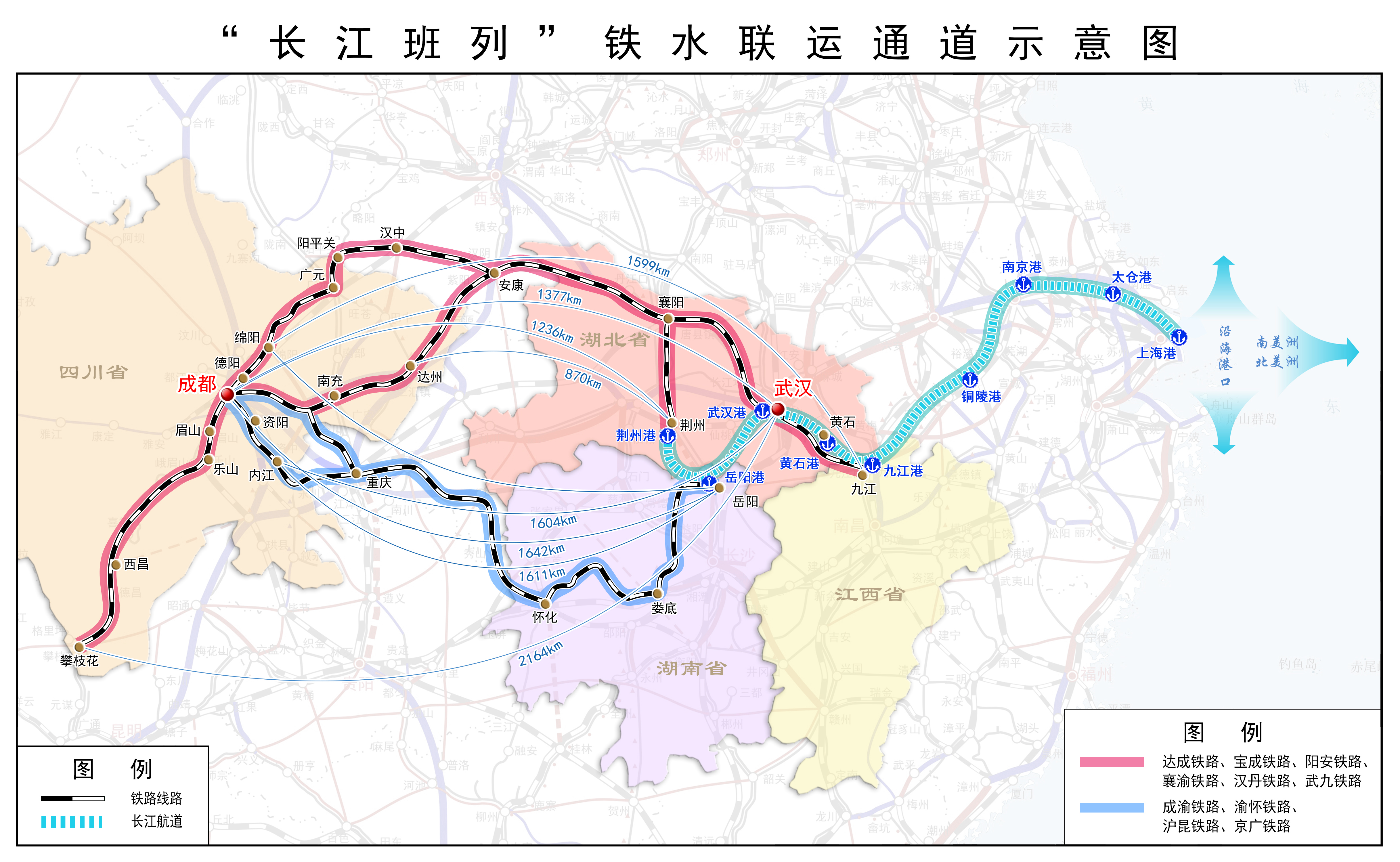 “长江班列”铁水联运通道示意图