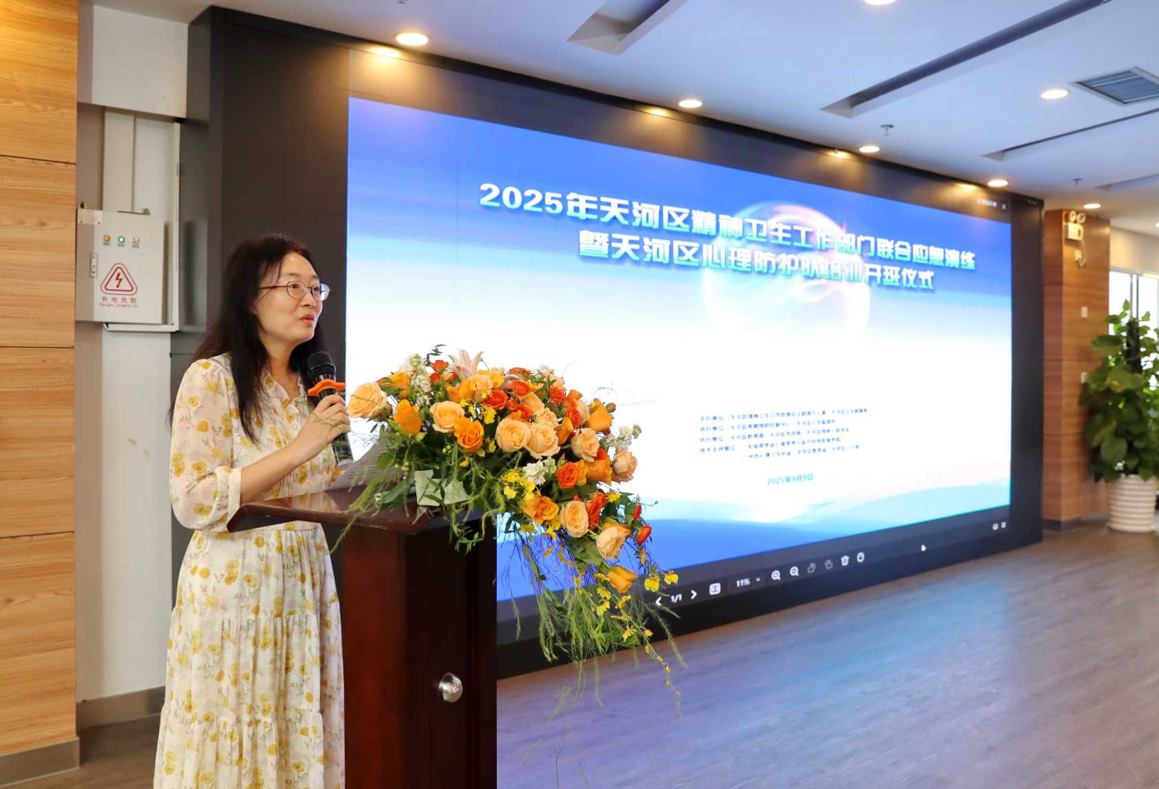 天河区委政法委副书记黄春春、天河区卫生健康局副局长岳枫在心理防护队培训开班仪式上致辞,在祝贺心理防护队成立的同时,也对全体队员提出了殷切希望:以同理之心搭建信任桥梁,以专业之能筑牢心理防线,以创新之志开拓服务新局面。